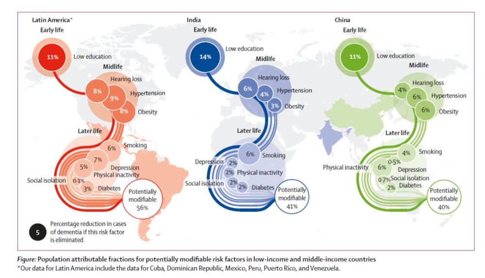 当然,更重要的是,普及义务教育,让儿童接受充分良好的基本教育,毕竟这是中低收入国家痴呆患者可控因素成因中最大的痛点。